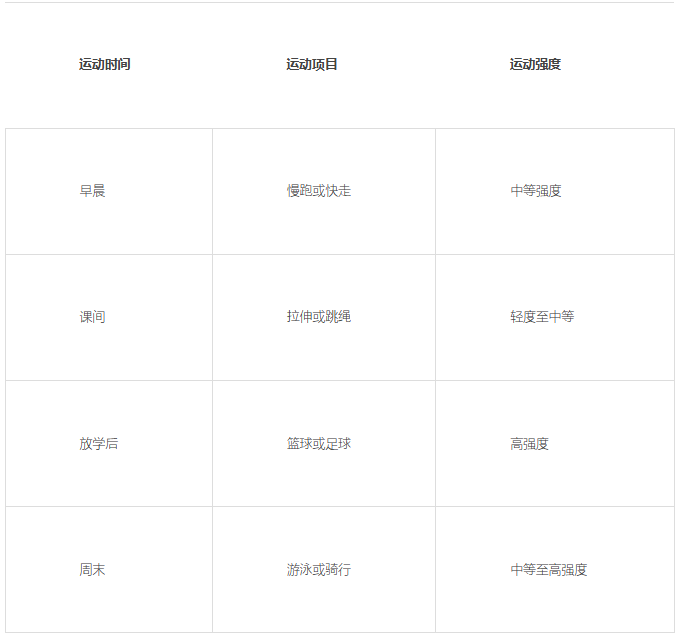 每天安排至少1小时的中高强度运动,可分次进行,每次不少于10分钟。